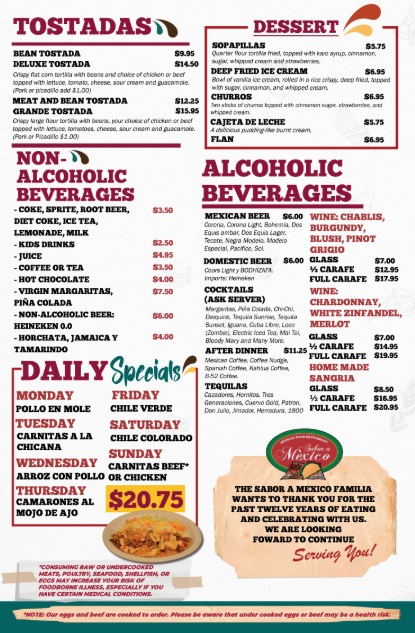 If you’re craving bold flavors and comforting classics, the Sabor A Mexico Menu is where things get exciting. Right from the first glance, you can tell this isn’t just a quick taco stop-it’s a lineup of dishes that feel homemade and full of personality. From sizzling fajitas that arrive at the table still steaming to generously filled burritos wrapped tight and packed with seasoned meats, rice, and beans, every option feels thoughtfully put together.